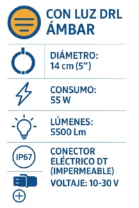 Lámparas LED de 5″ (UNIDAD) redondas con DRL naranja