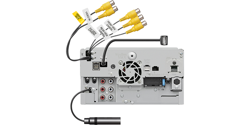 Para permitir una experiencia de conducción más inteligente, los receptores con 4 entradas de cámara permiten la máxima comodidad, flexibilidad y seguridad. Con 4 entradas de cámara, puede conectar una cámara trasera, cámaras laterales (punto ciego) y una cámara de tablero KENWOOD ( DRV-N520 se vende por separado). Alternativamente, 4 entradas de cámara pueden admitir varias otras configuraciones, incluida la conexión de 2 cámaras laterales, una cámara HD frontal y una cámara HD trasera ( CMOS-740HD se vende por separado). El cambio de cámara está disponible usando controles en pantalla o automáticamente para cámaras laterales cuando se conecta un iDatalink Maestro RR opcional (solo vehículos compatibles).