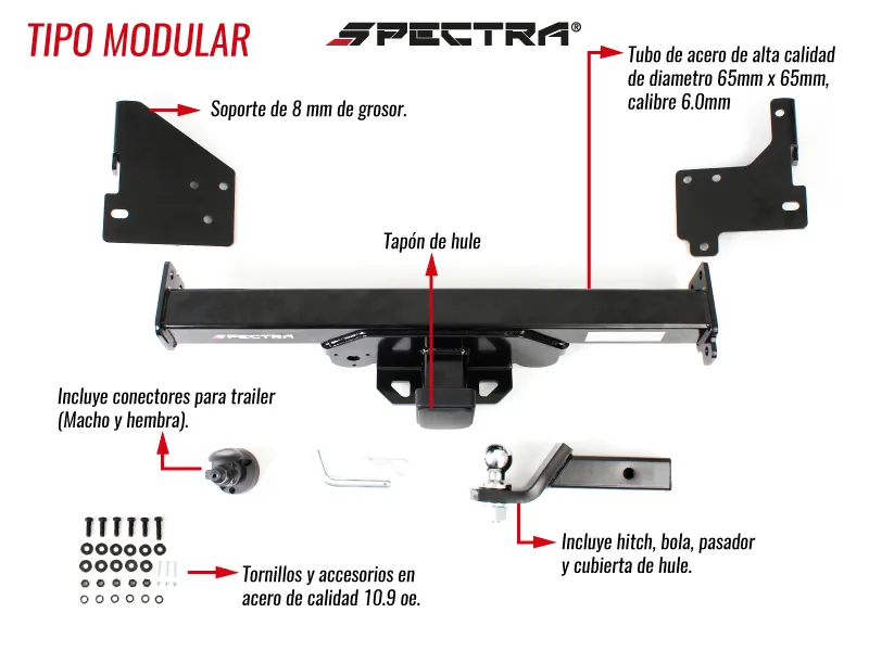 Incluye hitch, bola, pasador y cubierta de hule.